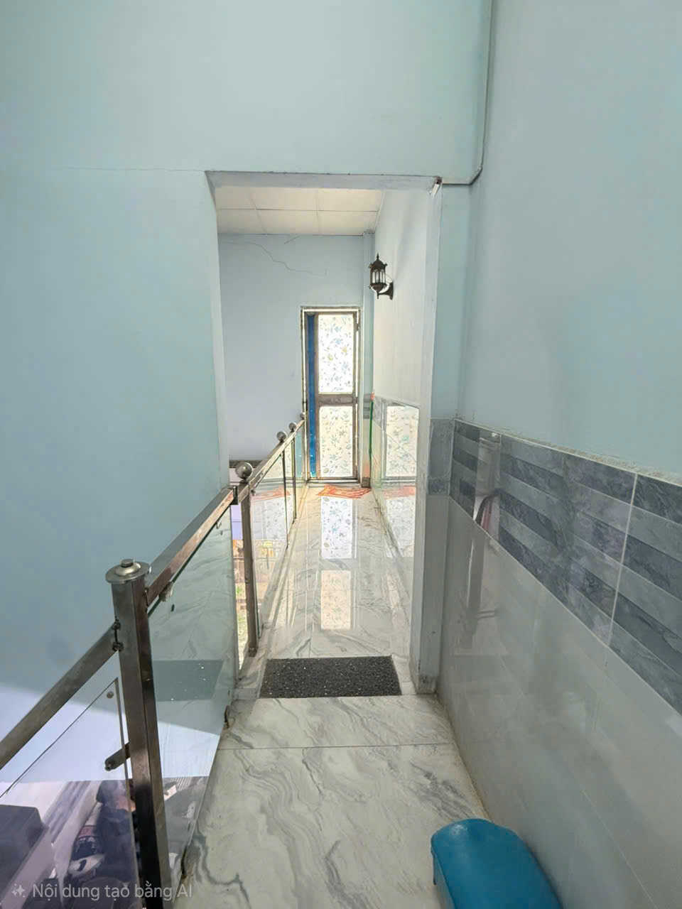 Kết cấu : 1 trệt - 1 lửng chữ L - ban công rộng 8m2