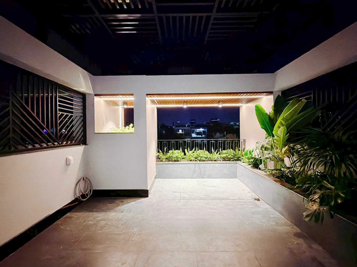 + sân thượng và sân sau đầy đủ công năng cây xanh vườn nam mỹ lá to