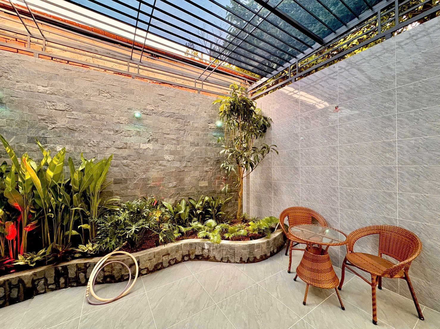 - Nhà có gara xe hơi riêng biệt , ban công rộng rãi thoáng mát , có sân sau trồng cây